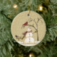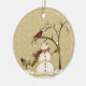 "De notre maison à la vôtre" Ornement de Noël Snowman - mignon bonhomme de neige lunaire avec oiseau rouge dans un arbre vendant des promenades en traîneau. Personnalisez avec vos propres informations. Si vous devez déplacer le texte ou modifier la taille, la police ou le texte, cliquez sur Customiser ! com