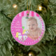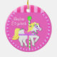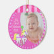 Le 1er ornement de cheval carrousel rose de Noël avec photo. Modifiez le texte pour n'importe quelle occasion.