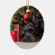 Cet adorable ornement de Noël, avec un Terrier écossais couché sous un arbre de Noël, est un cadeau merveilleux pour tout amoureux écossais.