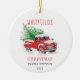Avec un camion rouge classique dans la neige avec un sapin de Noël à l'arrière pour donner l'ambiance pour ce qui va venir de la fête.