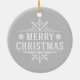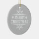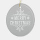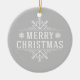 Cet ornement d'arbre en céramique est montré dans une belle couleur argentée avec une conception d'impression de flocon de neige de Noël Joyeux. Customisez cet objet ou achetez tel quel.