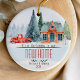 Très beau premier Noël dans notre nouvel ornement en céramique de scène d'hiver. Célébrez votre premier Noël dans votre nouvelle belle maison avec un joli ornement de vacances personnalisé avec une petite maison mignonne entourée d'arbres. Personnalisez-le en changeant l'année et votre nom de famille.