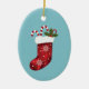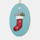 L'illustration originale de Destei d'un bas de Noël rouge festif qui en sort deux sucres de canne ainsi qu'un plante de Noël Holly. La couleur arrière - plan est bleue. De l'autre côté, il y a deux zones de texte personnalisables.