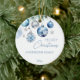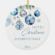 Joyeux Noël classique bleu argent baubles et flocons de neige sapin neige aquarelle photo ornement céramique.