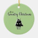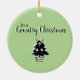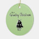Simple, rustique et vert vintage Pays ornement de Noël! Arrière - plan vert. En noir avec ombrage blanc : sapin de Noël en pot avec des bougies à l'ancienne, et les mots du dicton "C'est un Noël de pays" dans deux types de typographie.