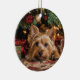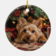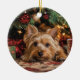 Cet adorable ornement de Noël, avec un Yorkshire Terrier couché sous un arbre de Noël, est un cadeau merveilleux pour tout amoureux du Yorkie.