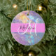 Nom monogramme irisé holographique rosé, pêche et aqua, et ornement céramique initial. Votre nom personnalisé et votre monogramme sont écrits dans un élégant script écrit à la main avec un arrière - plan rose. Un cadeau d'anniversaire ou de Noël parfait !