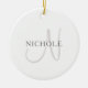 Décoration En Céramique Nom élégant Monogramme | Blanc et gris