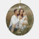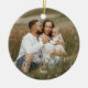 Un ornement minimaliste de Noël avec votre nom de famille dans un charmant script bleu comme une superposition sur une photo couvrant l'ensemble de l'ornement.