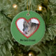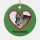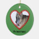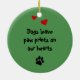 Cette décoration est de couleur verte de noël, pour célébrer votre lien spécial avec votre chien, votre chat ou tout animal de compagnie. Sur le devant, la photo de votre animal de compagnie est placée à l'intérieur d'un cadre en forme de coeur fait d'empreintes de pattes rouges. En dessous, le texte peut être édité pour le nom de votre chien, ou vous pouvez garder ceci comme simplement "Mon meilleur ami". Au verso, le texte (également modifiable) est "Chiens quittent nos empreintes de pattes sur nos coeurs". Un empreinte de patte et des coeurs supplémentaires sont à votre disposition pour la décoration. Téléchargez une photo de votre animal de compagnie pour rendre cet ornement personnel et spécial. Le modèle fonctionne le mieux avec une photo qui a le visage de votre animal au milieu, mais vous pouvez aussi cliquer sur le bouton "Personnaliser" pour effectuer d'autres réglages et réglages.
