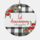 Notre 1er Anniversaire de Buffalo Personnalisé Ornament en Céramique Plaid. Personnalisez avec vos informations personnalisées à l'avant et à l'arrière.