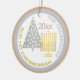 Personnalisez ce chic OUR 1ST CHRISMUKKAH ornement avec votre nom, année et photo pour un de nos bons gardiens de famille. Du ton or Hanoukka menorah à l'argent ton sapin de Noël, cet ornement blanc, gris argenté et chaud grillé d'amande tan commémorera votre première fête mélangée. Téléchargez votre photo à l'envers avec le modèle photo facile à utiliser et ajoutez votre nom et l'année à l'avant. "NOTRE 1ER CHRISMUKKAH" peut également être customisé à changer NOTRE à MON pour une version bébé ou enfant ou à modifier à un salut HAPPY CHRISMUKKAH plus générique. Créez votre propre ornement personnalisé First Chrismukkah pour vous-même ou comme un cadeau personnalisé pour les familles mixtes.