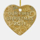Notre premier ornement de Noël 2011 avec un coeur orné de bijoux élégant d'or. Le bel ornement est imprimé des deux côtés.