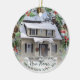 Célébrez le premier Noël de la famille dans leur nouvelle maison avec cet ornement gardien qui fait un grand cadeau de vacances ou de ménage. Une couronne d'aquarelle de verdure sainte et de baies encadre la photo de chaque côté, avec un dégradé blanc sur le fond pour mettre l'accent sur le texte élégant du script. Veuillez me contacter par Zazzle Conversation si vous avez besoin de modifications de conception ou d'autres couleurs.