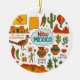 Commémorez votre voyage dans l'état du Nouveau-Mexique avec cet ornement moderne de Noël de gardien, avec des illustrations de style artisanal de nourriture, d'animaux, de monuments, de paysages et de culture emblématiques. Personnalisez le dos pour marquer votre aventure aux Etats-Unis et créez un souvenir que vous accrocherez à l'arbre pour les fêtes année après année.