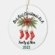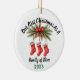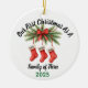 Cette conception présente une belle aquarelle illustrant des bouges de pin festives, des baies rouges et un arc rouge classique, d'où pendent trois bas rouges personnalisés. Pourquoi vous aimerez ce ornement : Entièrement personnalisé : customisez facilement les noms sur les trois bas (p. ex., papa, maman, [Nom de l'enfant] ou n'importe quel trois noms). Année commémorative : Représente l'année 2025 pour que vous vous souveniez toujours de cette étape importante. Conservation de haute qualité : Parfait pour accrocher sur l'arbre année après année, ou pour donner à de nouveaux parents ou une famille nouvellement formée. Prêt à l'accrochage : vient avec un ruban pour une utilisation immédiate. C'est le cadeau de Noël parfait pour : de nouveaux parents, le premier Noël du bébé, une nouvelle adoption, une famille mixte, ou toute famille qui grandit à trois membres cette année! Cliquez sur "Personnalisez" maintenant pour ajouter vos noms et faire de ce trésor ornement vraiment votre propre!