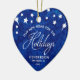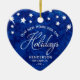 Donnez à vos clients un souvenir personnalisé de l'ornement des arbres de Noël pour célébrer leur nouvelle maison cette année. Conçu avec du texte blanc sur un arrière - plan texturé en marbre bleu de minuit avec étoiles. Le dos a une zone pour télécharger votre logo. Un logo blanc transparent aurait l'air merveilleux. Le texte peut facilement être changé en votre propre personnalisation.
