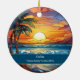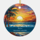 Belle scène de plage en faux vitrail, personnalisable Oahu Beach Trip souvenir. Idéal pour Noël et vacances en famille, ou momento lune de miel. Personnalisation : Changez la légende et l'année pour la rendre unique.