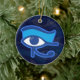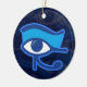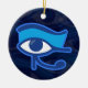 Un ornement en céramique à l'oeil de Horus, symbole de la protection dans l'Egypte ancienne. Ce design présente l'oeil Horus dans les tons bleus sur les yeux Horus défraîchis dans l'arrière - plan.