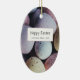 Oeufs de Pâques Pastel Joyeux Ornement en céramique de la famille de Pâques. Décor simple et moderne avec une photo d'oeufs de Pâques colorés aux couleurs pastel. Ajoutez votre texte, nom de famille et année.