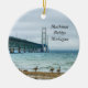 Un ornement de Noël avec des oies canadiennes sillonne la plage par une journée brumeuse et pluvieuse au beau pont Mackinac du côté du lac Huron. Il est situé à Mackinaw City Michigan. Vous recherchez plus d'impressions ou de produits ? N'hésitez pas à visiter mon magasin : http://www.zazzle.com/timelessmomentsphtgy Cette photo a été prise par Jennifer White with Timeless Moments Photography. Toutes les images sont protégées par copyright © Timeless Moments Photography.
