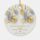 Un ornement en céramique vous propose votre nom d'entreprise et un accueil en lettrage chic accentué d'un design d'ornements en argent et en or et de flocons de neige. Assurez-vous de vérifier votre commande deux fois avant de l'ajouter à votre panier, car ce que vous voyez à l'écran est ce qui sera imprimé. Le service de design en direct peut vous aider à mettre en page votre design si nécessaire.