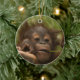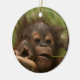 Voici le mignon bébé orangoutan appelé Kibriah du zoo de Twycross. Elle a roulé en arrière avec une lame d'herbe dans la bouche.