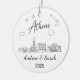 Un ornement de souvenirs de voyage personnalisé conçu pour célébrer votre voyage inoubliable. Que vous soyez allé au travail, que vous ayez apprécié une escapade romantique ou que vous ayez participé à un programme d’échange scolaire, cet ornement commémore un moment spécial que vous chérirez toujours et que vous voudrez vous rappeler pour les années à venir. Cet ornement dynamique en skyline présente des paysages urbains, des nuages de rêve et des étoiles scintillantes. Parfait pour les voyageurs comme pour les citadins ! Célébrez l'année que vous avez parcourue, que vous soyez marié, en famille ou en solo, avec notre ornement "Destination Voyage" magnifiquement conçu. Ce gardien personnalisé est l'ajout parfait à votre sapin de Noël, qui vous rappellera un séjour que vous aimerez pour les années à venir. Conception personnalisée : Customisez avec votre prénom ou votre nom de famille pour créer un souvenir unique. Cadeau parfait : Un choix intéressant et mémorable pour les amis ou la famille. Utilisation polyvalente : Plus qu'un ornement d'arbre ! Affichez cette belle tenue de jour dans votre maison toute l'année comme un rappel durable de vos vacances spéciales. Notre décoration "Destination Voyage" est plus qu'une simple décoration. C'est un souvenir sincère, symbolisant votre voyage à explorer le monde. Chaque ornement est minutieusement conçu pour capturer la joie et l'excitation de vos vacances cette année-là.
