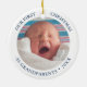 Our First Christmas as Grandparents Modern Photo Ceramic Ornament in classic navy blue color