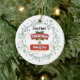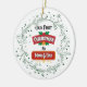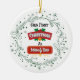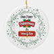 Mark your new parenthood milestone with this joyful round ornament featuring holly, snowflakes, and "Our First Christmas as Mom & Dad" in festive red and gold.