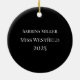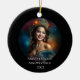 This Christmas ceramic ornament is shown in a round shape with a sample photo print of a pageant queen.