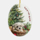 A l'avant de cet ornement de Fêtes se trouve l'image d'un adorable chiot maltais blanc posé sur son lit en osier devant un sapin de Noël décoré. Le texte rouge courbé sur le côté dit "NOËL". Au verso, le texte rouge et vert indique MERRY CHRISTMAS", et il y a des champs de texte supplémentaires pour vous permettre de customiser à ce que vous voulez.
