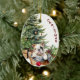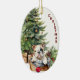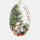 A l'avant de cet ornement de Fêtes se trouve l'image d'un adorable chiot Bulldog posé dans son lit en osier en face d'un sapin de Noël décoré. Le texte rouge courbé sur le côté dit "NOËL". Au verso, le texte rouge et vert indique MERRY CHRISTMAS", et il y a des champs de texte supplémentaires pour vous permettre de customiser à ce que vous voulez.