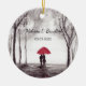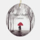 Ornement parapluie rouge. Couple d'amoureux. Dessin romantique. Couple amoureux. Romantisme. Anniversaire. Premiers rendez-vous. Mariage. Noces. Fiançailles. Cadeau pour jeunes mariés. Cadeau de Noël.
