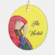 Feliz Navidad ornement réversible de perroquet, avec un perroquet rouge sur des arrière - plans jaunes et bleus. Avec des lettres bleues et jaunes, vous pouvez ajouter votre propre message. Idéal pour souhaiter un Joyeux Noël avec une saveur mexicaine.