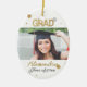 L'ornement photo moderne de graduation comporte des points et des cercles de confettis festifs avec des parties scintillant en or imprimé et des effets de feuille d'argent. Ajoutez votre année de graduation personnalisée et votre nom ou autre texte pour un cadeau de graduation personnalisé amusant. L'aspect métallique est moderne et tendance.