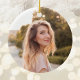 Créez votre propre ornement de 21e anniversaire avec une photo sur le dos. L'oeuvre numérique présente une parties scintillant en faux argent, des étincelles et du papier métallique brossé magenta et rose chaud. Les éléments d'art s'impriment comme une photo.