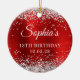 Créez votre propre ornement de tenue de 18e anniversaire avec une photo sur le dos. Modifiez la couleur de police blanche si vous le souhaitez. L'oeuvre numérique présente une parties scintillant en faux argent, des étincelles et une feuille en métal brossé rouge. Les éléments d'art s'impriment comme une photo. Si vous supprimez la photo au dos.