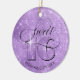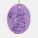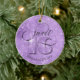 Ajoutez une touche d'élégance à votre chambre pour un Sweet sixteen avec cet ornement en céramique avec une police décorative unique dans un style rétro branché, un arrière - plan de violet scintillant. Le numéro frappant 'Sixteen' dans un effet de parties scintillant violet brillant violet est facultatif et peut être supprimé pour utiliser le modèle à d'autres occasions. Utilisez le modèle fourni pour ajouter un nom de célébrant et une date de naissance. Recherchez ID675 pour voir d'autres produits et options de couleur pour cette conception.