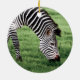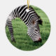 Décor en céramique avec l'image d'un zèbre pâturant sur un gras vert luxuriant.