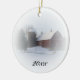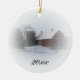 Customisez l'Ornement de Noël de Noël de la Campagne avec l'année en cours. Créez un cadeau personnalisé de rembourrage, cadeau cadeau cadeau cadeau cadeau cadeau cadeau cadeau cadeau cadeau cadeau cadeau cadeau d'hôte de vacances. Ce décor rustique sur le thème de la ferme est décoré d'une photo d'hiver pittoresque d'une grange rouge et d'un silo recouvert de neige blanche.