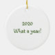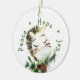 Quelle année ça a été ! Voici un joli ornement de gardien qui résume 2020 qui présente une aquarelle longue fouettée zèbre blanc avec masque visage, texte vert "Paix, joie, espoir" et boughs de semis de Noël sur l'arrière - plan blanc. Personnalisez avec le nom ou un autre message sur le dos.