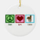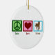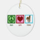 Un signe de paix, un coeur, et un beau cheval courant. L'ornement de Noël parfait pour un équestre. Personnalisez ce cadeau avec votre propre texte sur le dos.