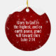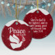 Peace On Earth white dove religious holiday ceramic ornament, featuring berry red sparkle and a snowy cap that captures the true magic and joy of the season. The back displays the sacred scripture: "Glory to God in the highest, and on earth peace, good will toward men - Luke 2:14," all in customizable text. Personalize it with your favorite Bible verse to create a festive design in these hanging decorations. Ideal for Christmas tree decor, mantels, or gifts, this custom inspirational doctrine, devotional keepsake embodies divine passages from the word of our Lord, adding a touch of faith and cheer to your celebrations. Order yours today and bring Xmas Christian season teachings into your home!