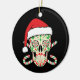 Un crâne à sucre sur le thème de Noël avec chapeau de Père Noël, yeux de menthe poivrée et arêtes de sucre de canne.