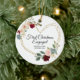 Personalised Burgundy Flowers First Christmas Engaged Ceramic Ornament