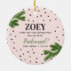 Personalized Bridesmaid Proposal Pink with Dots Ceramic Ornament. Personalize with your custom information on both front and back.