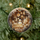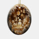 Bring warmth and wonder to your holiday tree with this golden winter wonderland Christmas ornament. Featuring a stunning 3D-look design, this ornament captures a magical snowy scene - a cheerful snowman surrounded by glistening trees, twinkling stars, and intricate detailing. The dimensional design gives the illusion of depth and light, making it a standout piece that shimmers beautifully among your holiday lights. The back of the ornament offers a refined personal touch - elegantly customized with your family name and year in classic gold typography on a deep, rich background. A perfect balance of elegance and festive charm, this keepsake is sure to become a treasured part of your Christmas tradition.