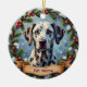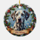 A beautiful, ultra-detailed Christmas design featuring a realistic portrait of the breed centered within a soft, festive winter frame. This elegant design includes pine branches, red berries, and snowflakes against a snowy backdrop, illuminated by warm holiday lighting. The balanced, round composition includes clear space below the dog for customization.
