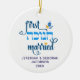 Mignons PREMIER HANOUKKA MARIÉ ornement céramique avec NOMS PERSONNALISABLES & ANNÉE. Hanoukka est écrit en hébreu. Le design montre la typographie en écriture manuscrite bleu Hanoukka avec le dreidel bleu et jaune. Un beau souvenir pour les couples célébrant leur première Hanoukka mariée. Le design est répété sur le dos. Version anglaise disponible séparément. Aussi en bleu.
